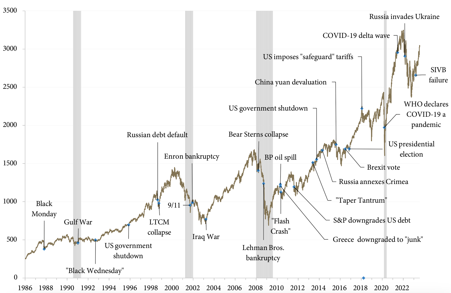 Financial market history is filled with the “next big crises” — these are the bricks that make up the wall of worry. While these events may cause disruptions and volatility, they more often than not prove temporary, and the outcome is rarely as bad as feared. Markets ultimately resume their climb.