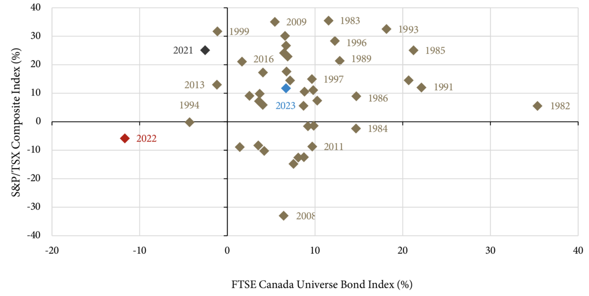Source: Guardian Capital based on monthly data from Bloomberg and PC Bond from December 1979 to December 2023