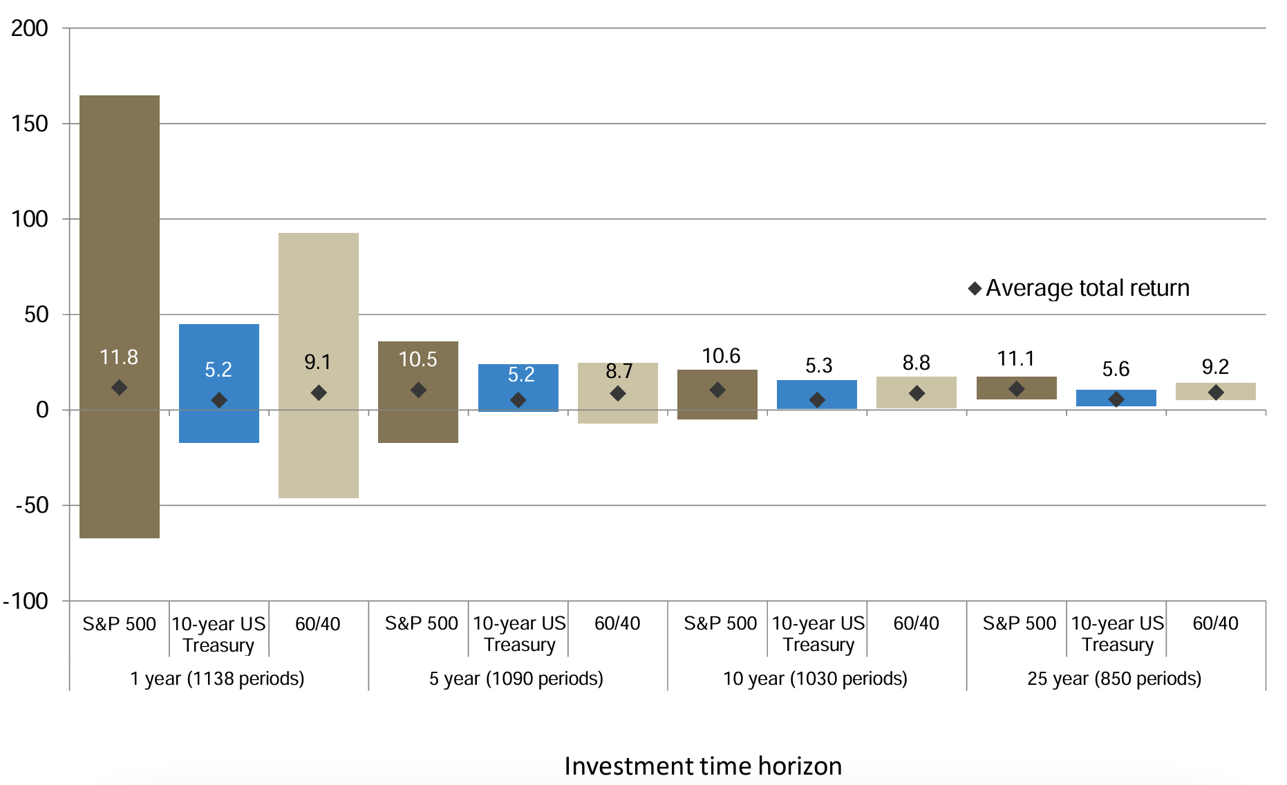 Range of total returns over different investment horizon